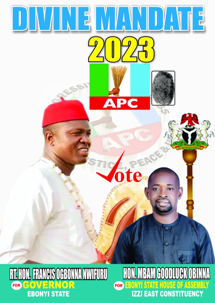 This aspiring young man is contesting under the platform of APC and I am urging everybody within Izzi East Constituency through this write-up to rally around him and vote for him massively, come 11th March, 2023 poll for he represents a new order of hope and effective representation to the good people of Izzi East State Constituency.